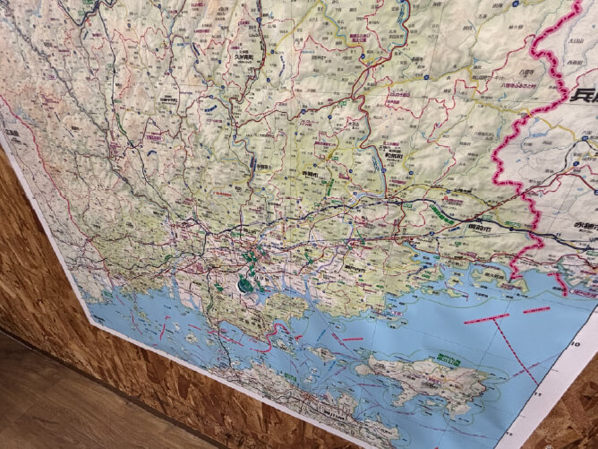 近常車輪には、岡山県全域を見渡せる大きな地図を設置しています。